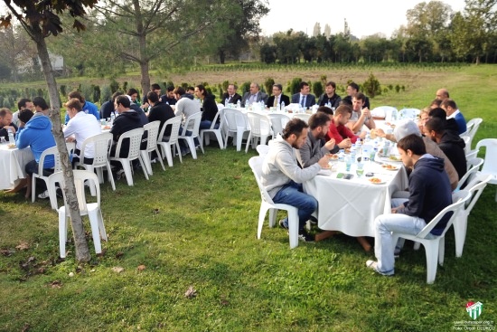 Fidan dikme töreni öncesi İkinci Başkanımız Recep Bölükbaşı, İdari Asbaşkanımız İsmet Demirel, Altyapıdan Sorumlu Yöneticimiz Necmettin Kocaman, Baş Hukuk Danışmanımız Öztürk Yazıcı, Genel Müdür vekilimiz İsmail Özdemir, Teknik Direktörümüz Ertuğrul Sağlam, Yardımcı Antrenörlerimzi Mutlu Topçu, Özhan Pulat, Öztürk Tanrıbilir ve futbolcularımız, Osmangazi Belediye Başkanı Mustafa Dündar ile birlikte Osmangazi Belediyesi fidanlığında yemek yedi.