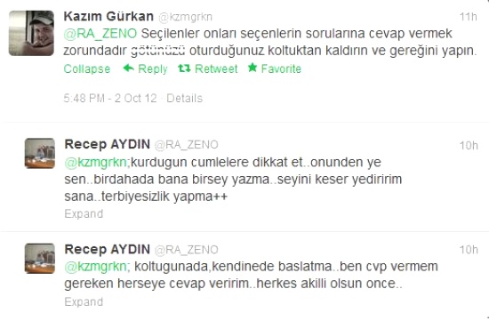 Aydın, bu kez de sosyal paylaşım ağı Twitter üzerinden kendisini eleştiren bir taraftara hakaret ve tehditler savurdu. Hatırlanacağı üzere, söz konusu yönetici daha önce de yine Twitter üzerinden kendisini eleştiren bir kişiye küfürlü karşılık vermiş ve saatler sonra yazdığı küfürlü iletileri kaldırmıştı.