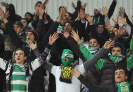 Tribünde yerini alan yaklaşık 100 Yeşil Beyaz sevdalısı takımlarını büyük bir coşkuyla destekledi.