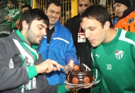 Bu arada, 28. yaş gününü bugün kutlayan başarılı oyuncu Batalla da unutulmadı. Yeşil-beyazlı taraftarlar, yaptıkları tezahüratlarla Batalla'nın doğum gününü kutladı. Tribüne çağırarak alkışlanan Batalla'ya Bursaspor yönetimi de bir sürpriz yaptı. Oyun sahasını çevreleyen elektronik reklam tabelalarında İngilizce ve İspanyolca, 'Happy Birthday Batalla' yazıldı.
